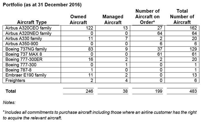 Commenting on the operating results for 2016, Robert Martin, Managing Director and Chief Executive Officer, said “we finished 2016 with strong momentum, deploying all of our IPO proceeds in the fourth quarter of the year. We delivered five incremental widebodies under a purchase and lease back with Air China that included taking delivery of our 250th aircraft from Airbus. In addition, we pipelined incremental business for 2017 with the six A350 aircraft acquired under a purchase and lease back agreement with Qatar Airways and 10 additional A320 family aircraft acquired for delivery onto our orderbook in 4Q2017.”