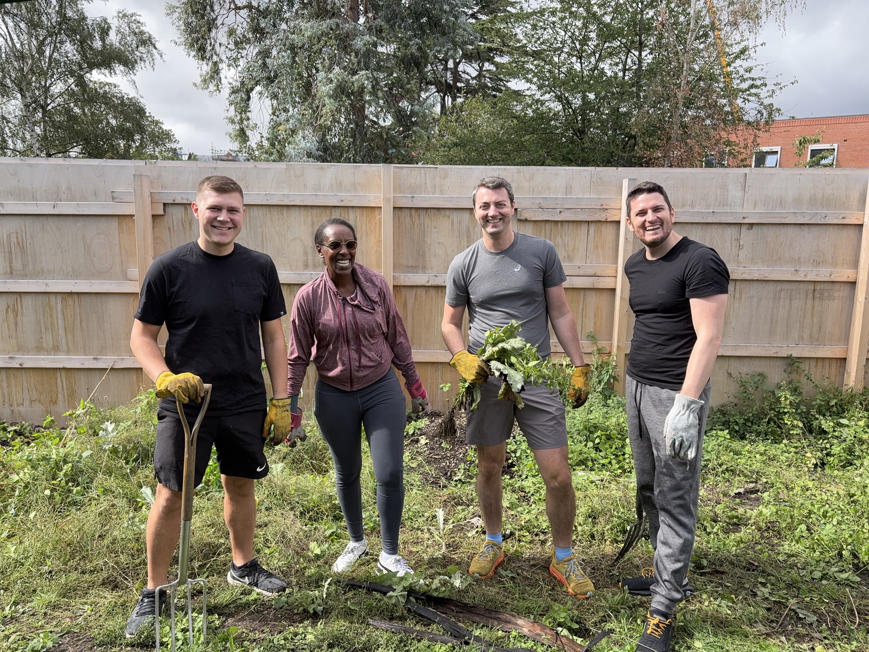 Employees from our London office collaborated with Share Community, a charity supporting adults with learning disabilities, autism, and mental health needs. Together with the students, they cleared a garden space to prepare for a new fruit and vegetable patch—an activity that fosters connection, confidence, and hands-on learning.