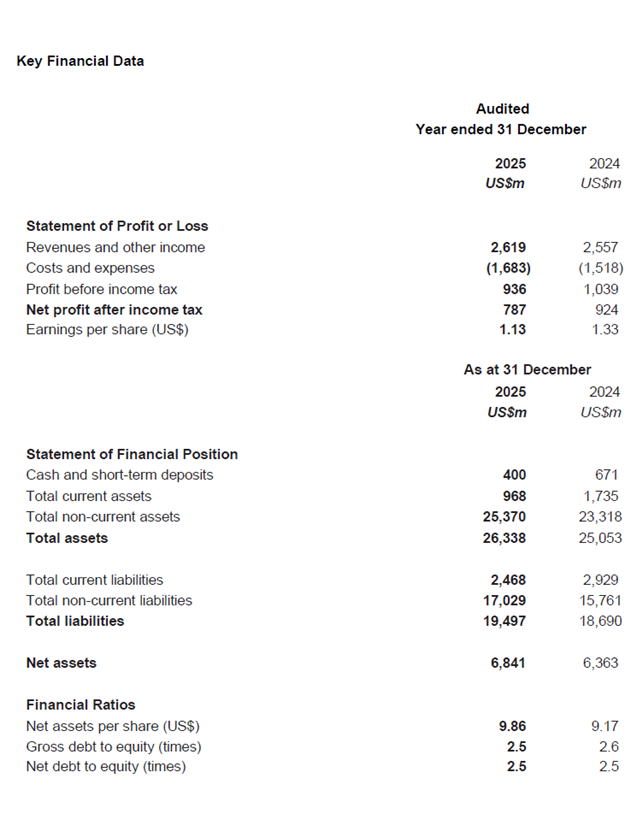- The Board recommended a final dividend for 2025 of US$0.3061 per share, bringing the total dividend for the financial year 2025 to US$0.45371 per share, equivalent to 40% of net profit after tax