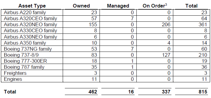 - Comprises all purchase commitments including six where an airline customer has exercised the right to acquire the aircraft on delivery.