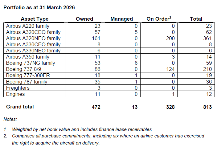- A total portfolio of 813 aircraft and engines owned, managed and on order
