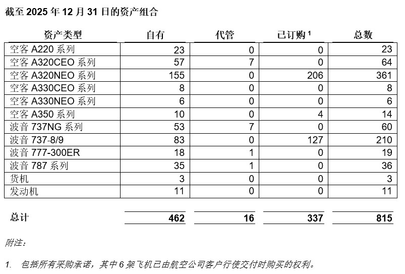 中银航空租赁提供的飞机来自全球机龄最短、型号最新的机队。我们的机队主要由新型飞机组成,直接购自飞机厂商。我们亦通过与航空公司的购机回租业务购买更多的飞机。