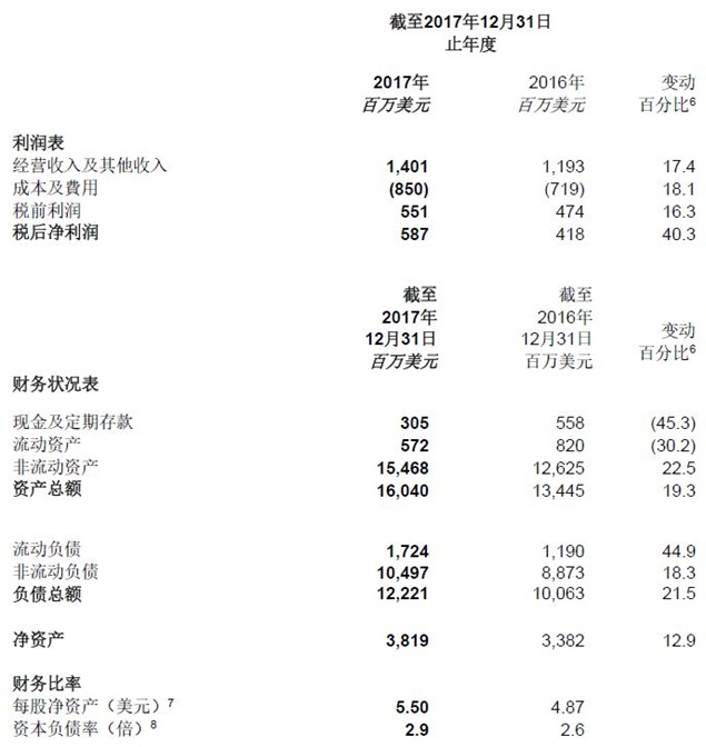 7 每股净资产按净资产除以截至2017年12月31日止及2016年12月31日止发行在外的股份总数计算(分别列示于两列)。截至2017年12月31日及2016年12月31日发行在外的股份均为694,010,334股。